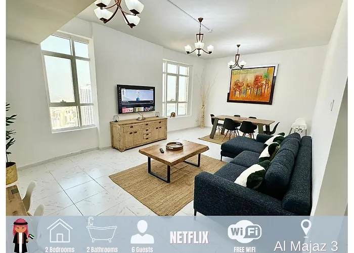 Sctda fica a menos de 300 metros de distância deste apartamento . O apartamento está localizado no distrito de Al Majaz. Shiraz Iranian Restaurant, situado a 300 metros de distância, serve cozinha persa.